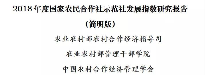 为更好反映2018年度农民合作社发展情况,尤其是更全面客观反映国家农民合作社示范社的基础实力、发展活力和创新能力,农业农村部农村合作经济指导司、农业农村部管理干部学院、中国农村合作经济管理学会构建了国家农民合作社示范社发展指数,应用科学、合理的指标体系对国家农民合作社示范社的整体发展水平进行评估,以此评价示范社发展的规范性和适宜性,助力增强政府扶持资金的瞄准性和有效性。
